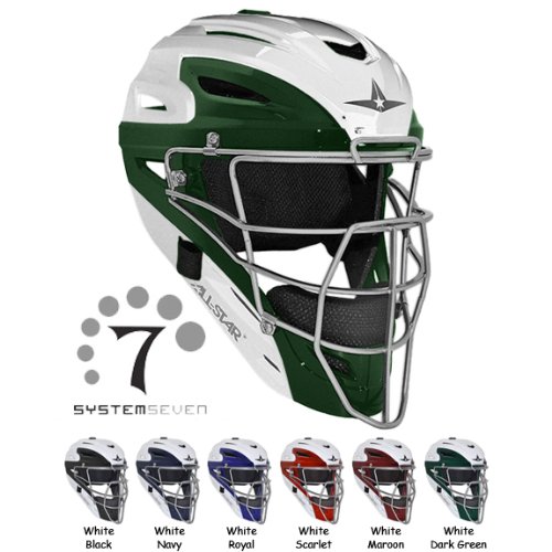 ALL-STAR MVP2500 White Two Tone Baseball Catcher s Helmet (NOCSAE) The System Seven White Two Tone helmets are HOT They are constructed with an impact resistant ABS resin shell painted with a gloss finish to make it pop. A redesigned strong I-Bar Vision steel cage comes standard and the fast drying UltraCool mesh liner is not only protective but also extremely comfortable. - Youth through High School - UltraCool mesh liner system - Moisture wicking chin pad and liner - Machine washable padding - High impact resistant ABS plastic shell - Advanced shell design - I-Bar Vision steel cage - White Two Tone styling - Meets NOCSAE Standard. Available Sizes and Colors: Adult (Hat Sizes: 7-7 3/4): White/Black, White/Navy, White/Royal, White/Scarlet, White/Maroon, White/Dark Green Youth (Hat Sizes: 6 1/4-7): White/Black, White/Navy, White/Royal, White/Scarlet Due to color differences in monitors, the colors on this site are for reference only. Please contact Epic Sports if you have any color questions.
